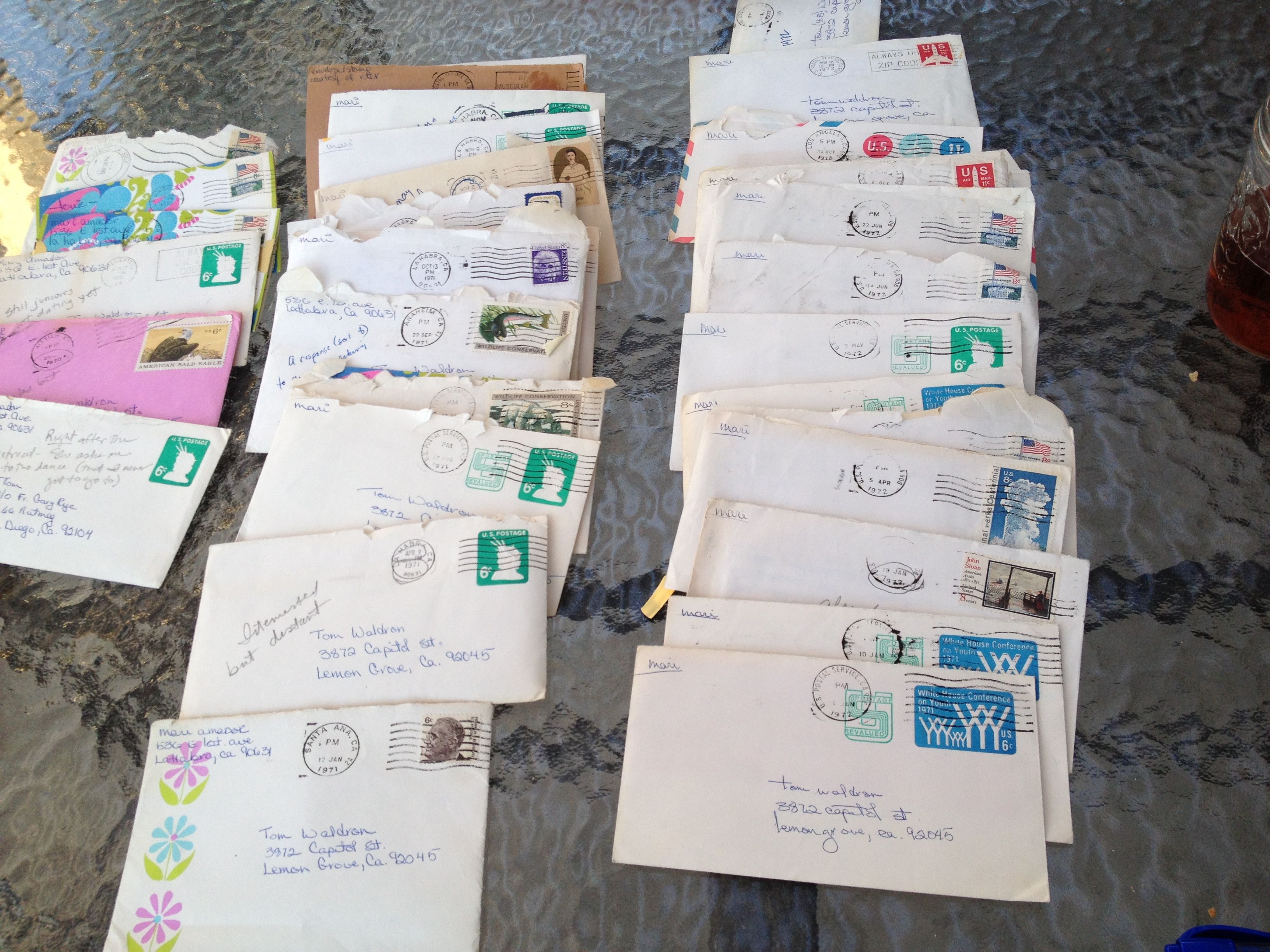When I delved into a long-forgotten box of cards and letters that my wife and I had written to each other when we were courting from 1970 to 1974, I had no idea what I was getting into. We met as high school juniors but did not begin dating until the fall of the year we graduated. From October of ’71 to May of ’74 when we were married, the letters flew hot and heavy between my home in San Diego and hers in Orange County.