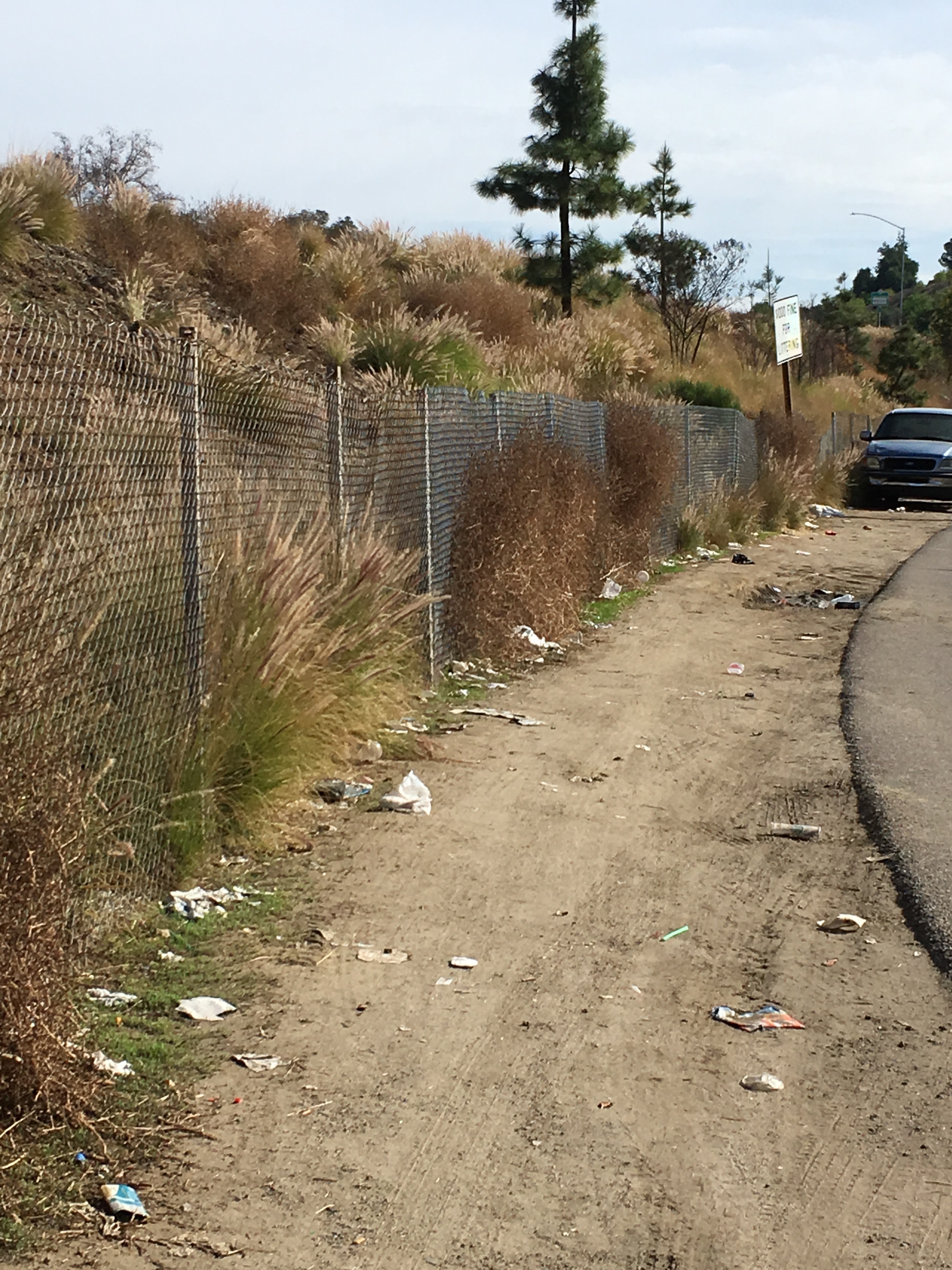 However, the owners left behind a pile of refuse, and as I looked up and down the frontage road, I realized just how trashy the 150 yards or so that I drive past several times a day had become.  The dirt pathway along a fence that parallels a freeway entrance is a walkway for many middle school kids who frequent the local Starbucks and the convenience store on the corner and leads to two or three apartment buildings down the way.