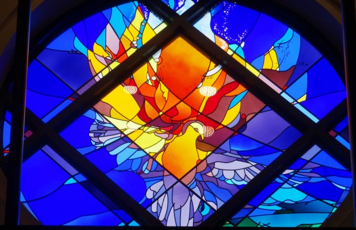 As he passed by the church, he admired the new stained-glass windows glinting in the sun, reflecting the warm and forgiving light of the Lord.
